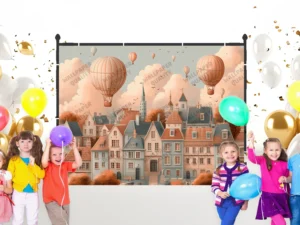 Bulutların Arasında Süzülen Sıcak Hava Balonlarıyla Hayaller Fon Kumaş