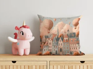 Bulutların Arasında Süzülen Sıcak Hava Balonlarıyla Hayaller Kırlent