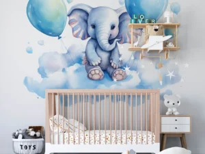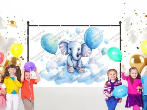 Bulutların Üzerinde Balonlarla Dans Eden Sevimli Fil Poster Duvar Kağıdı