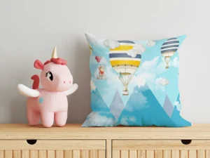 Balonlarla Yükselen Neşeli Dostluklar Kırlent