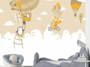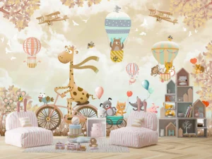 Bisikletli Zürafa ve Neşeli Dostlarının Balonlarla Dolu Masalı Poster Duvar Kağıdı