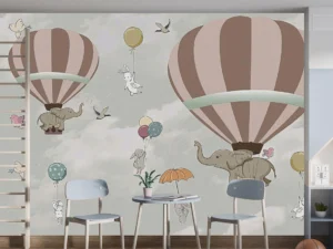Balonlarla Uçan Filler ve Tavşanların Masalsı Dünyası Fon Perde