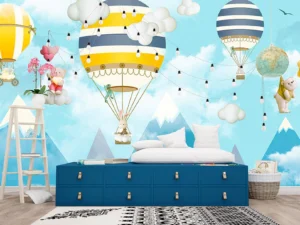 Balonlarla Uçan Sevimli Ayılar Poster Duvar Kağıdı