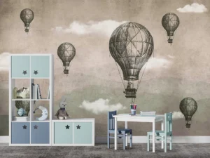 Balonların Zamanda Asılı Hayallerinin Nostaljik Dansı Fon Kumaş