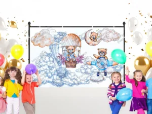 Rüyaların Hafifliğiyle Dans Eden Sevimli Ayıcıkların Gökyüzü Macerası Fon Kumaş