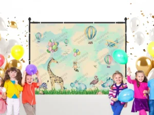 Neşeli Kaşiflerin Balonlarla Gelen Dostlukları Fon Kumaş