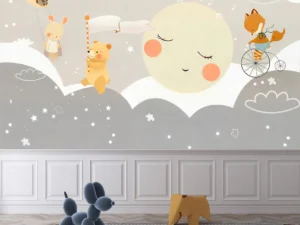 Ay ve Yıldızların Altında Hayvanlar ile Tatlı Rüyalar Poster Duvar Kağıdı
