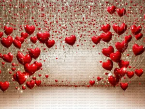 Parlak Kırmızı Kalplerin Havada Süzüldüğü Sevgililer Günü Fon Perde