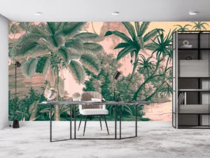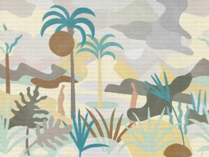 Bu tasarım, tropikal bir düşü andıran pastel renkler ve egzotik bitkilerle dolu bir sahne sunuyor. Palmiye ağaçları, yumuşak renk tonları ve zarif detaylar, izleyiciye huzurlu ve rahatlatıcı bir atmosfer ...