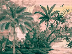 Bu tasarım, tropikal bir ormanın gizemli şafağını yansıtıyor. Sakin suların kıyısında yükselen yemyeşil bitki örtüsü, huzurlu ve egzotik bir atmosfer yaratıyor. Bu eser, tropikal ormanın doğal güzelliğini ve dinginliğini ...