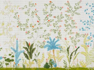 Bu tasarım, tropikal bir bahçenin huzurlu ve rüya gibi atmosferini yansıtıyor. Pastel tonlardaki yaprakların hafif dansı ve renklerin zarif uyumu, mekana dinginlik ve zarafet katıyor. Bu eser, tropikal bitkilerin ...