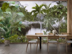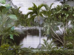 Bu tasarım, tropikal bir ormanın kalbindeki gizemli ve huzurlu bir gölü yansıtıyor. Yemyeşil bitki örtüsü ve sakin sular, izleyiciyi doğanın dinginliğine davet ediyor. Bu eser, tropikal ormanın gizemini ve ...