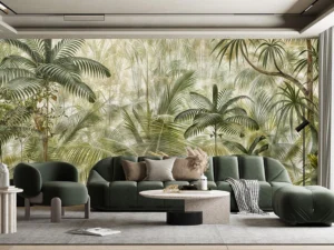 Bu tasarım, tropik bir ormanın gizemli ve büyüleyici atmosferini yansıtıyor. Yemyeşil palmiye ağaçları, derin gölge oyunları ve zengin yeşil tonları, izleyiciyi tropikal ormanın kalbine götürüyor. Her detay, tropik ormanın ...