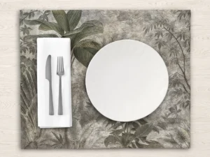 Bu tasarım, tropik ormanın zamansız dokusunu ve huzurlu atmosferini yansıtıyor. Puslu yeşil tonlar ve vintage yaprak silüetleri, tropik bir vahayı andıran dingin ve huzurlu bir atmosfer yaratıyor. Bu eser, ...