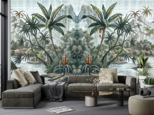 Bu tasarım, tropik zarafetin zamansız bir yorumunu sunuyor. Vintage esintili palmiye ağaçları ve solgun tonlar, tropik bir rüyanın nostaljik ve zarif bir yansımasını mekanlara taşıyor. Bu eser, tropik bir ...