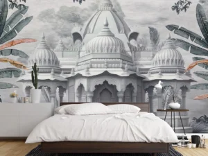 Tropik Tapınağın Yapraklardaki Fısıltısı ve Tarihin Yankısı Fon Kumaş