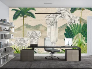 Tropik Bitkiler ve Antik Desenlerin Büyülü Buluşması Kırlent