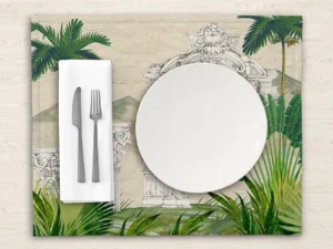 Tropik Bitkiler ve Antik Desenlerin Büyülü Buluşması Masa Örtüsü
