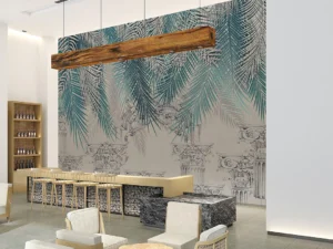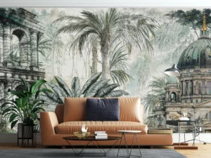 Antik Sütunların Gölgesinde Yükselen Tropik Bahçe Poster Duvar Kağıdı