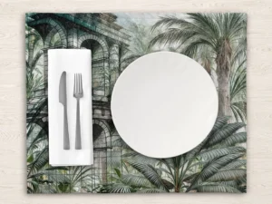 Antik Sütunların Gölgesinde Yükselen Tropik Bahçe Masa Örtüsü