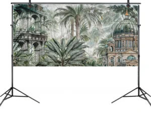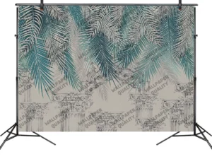 Antik Sütunların Gölgesinde Yükselen Tropik Bahçe Fon Perde