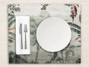 Tropik Ormanın Kalbinde İki Aşk Kuşu Masa Örtüsü