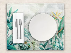Tropik Ormanın Canlı Renklerini ve Hareketli Yaşamını Yansıtan Görsel Masa Örtüsü