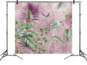 Tropik Bahçedeki Kuşların Dansı ve Çiçeklerin Şarkısı Fon Kumaş