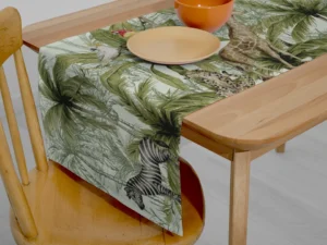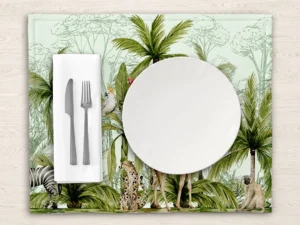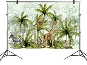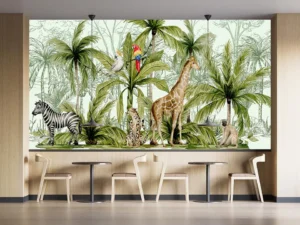 Bu tasarım, tropik ormanın canlı renklerini ve hareketli yaşamını yansıtıyor. Papağanların neşeli cıvıltıları, zürafanın zarafeti, zebranın enerjisi ve maymunun meraklı bakışları, bu eseri izleyenlere tropik bir maceranın içinde hissettiriyor.