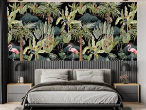 Tropik Ormanın Renkleri Arasıdaki Flamingolar Poster Duvar Kağıdı