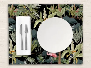 Tropik Ormanın Renkleri Arasıdaki Flamingolar Masa Örtüsü