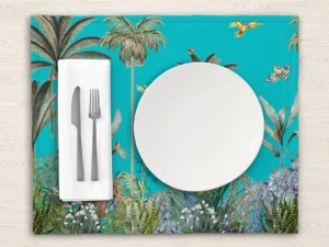 Tropik Ormanın Renkli Kuşların Büyülü Dansı Fon Kumaş