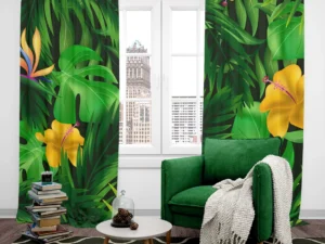 Tropikal Bahçenin Renkli Rüyasındaki Çiçeklerle Yaprakların Dansı Fon Perde