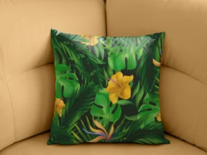 Tropikal Bahçenin Renkli Rüyasındaki Çiçeklerle Yaprakların Dansı Kırlent
