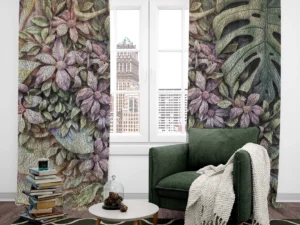 Tropik Yaprakların Taş Kabartma Sanatıyla Buluşan Mistik Bir Hava Fon Perde