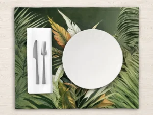 Tropik Yaprakların Taş Kabartma Sanatıyla Buluşan Mistik Bir Hava Masa Örtüsü