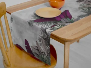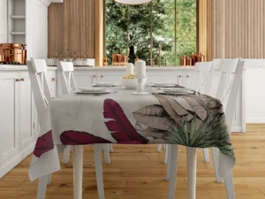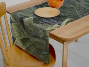Tropik Yaprakların Renkleriyle Canlanan Huzurlu Bir Bahçe Masa Örtüsü