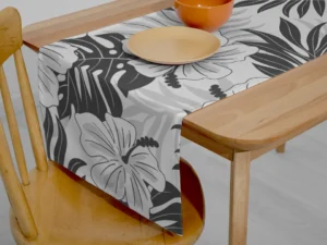 Siyahın Asaleti ve Beyazın Zarafetiyle Buluşan Tropik Yapraklar Masa Örtüsü