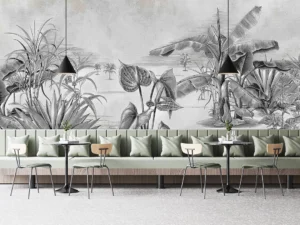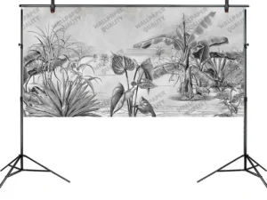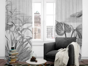 Siyah Beyazın Asaletinde Mükemmel Bir Zarafetle Yaprakların Ahengi Fon Perde