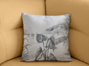 Siyah Beyazın Asaletinde Mükemmel Bir Zarafetle Yaprakların Ahengi Kırlent