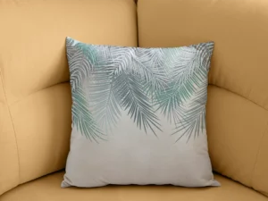 Pastel Tonun Dinginliğiyle Buluşan Tropik Yapraklar Kırlent