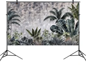 Koyu Yeşil ve Gri Tonlarıyla Tropik Yaprakların Gizemli Dokunuşu Fon Kumaş