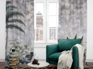 Koyu Yeşil ve Gri Tonlarıyla Tropik Yaprakların Gizemli Dokunuşu Fon Perde