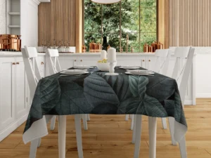 Gizemli Yaprakların Gölgesi Tropik Gece Serinliği Masa Örtüsü