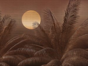 Gün Batımında Tropik Yaprakların Altın Dokunuşu Poster Duvar Kağıdı