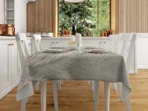 Beyazın Saflığıyla Aydınlanan Tropik Yaprakların Zarafeti Masa Örtüsü