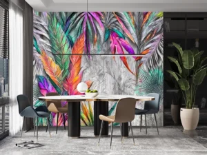 Canlı Renklerin Enerjisiyle Dans Eden Tropik Yapraklar Poster Duvar Kağıdı