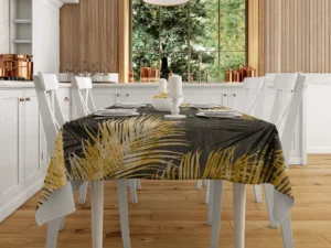 Altın Yaprakların Büyüsü Lüks Tropik Esinti Masa Örtüsü
