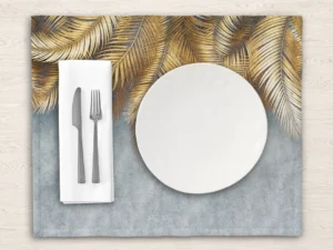 Altın Dokunuşlarla Yükselen Tropik Yaprakların Lüks ve Göz Alıcı Cazibesi Masa Örtüsü