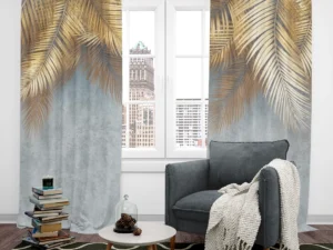 Altın Dokunuşlarla Zenginleşen Tropik Yaprakların Lüks Cazibesi Fon Perde